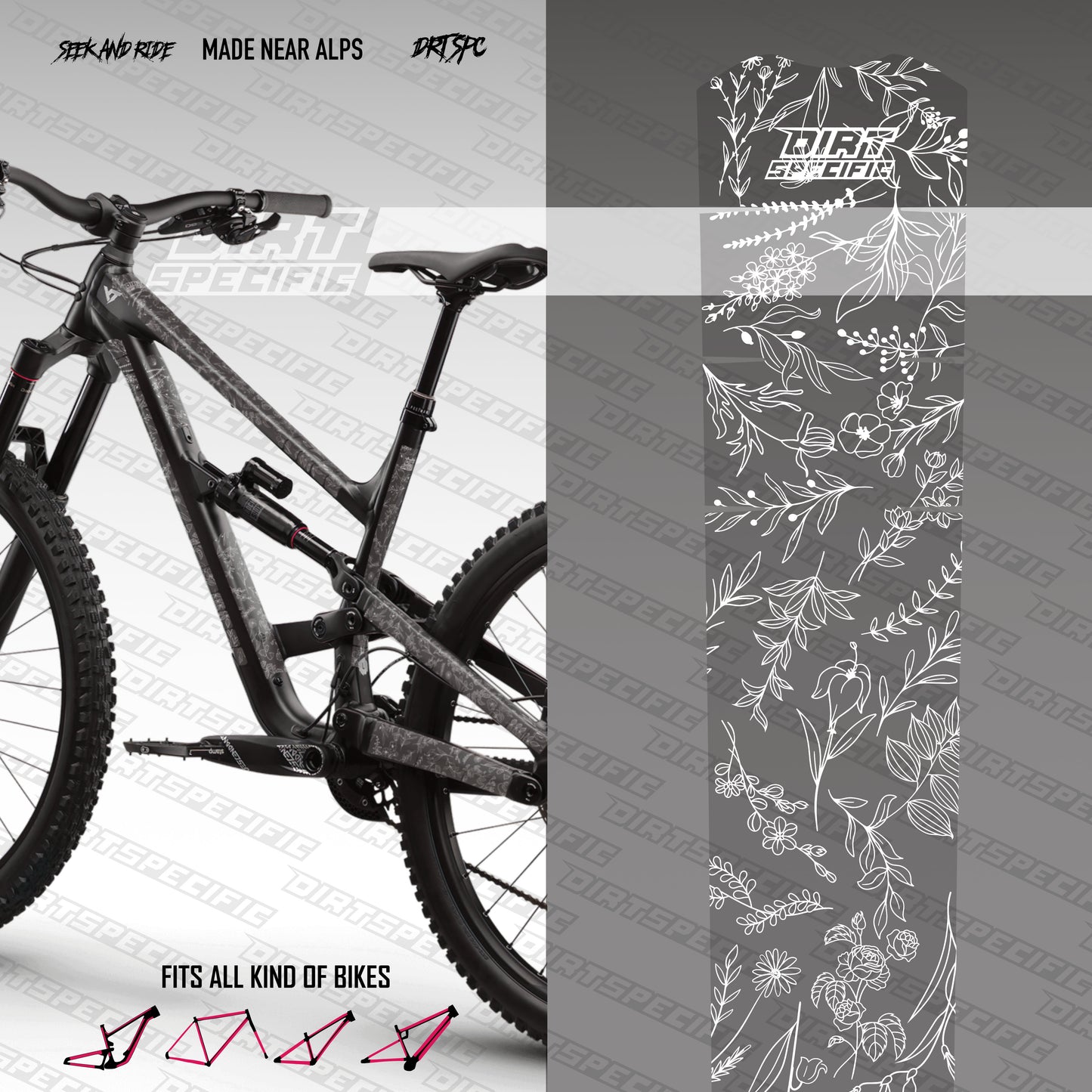 White garden - Bike Frame wrap MK2 - (Custom Color Options🎨 )